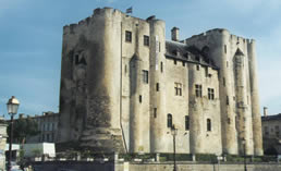 (Fin XIIème siècle) Vestige remarquable du château de Niort. L'un des plus importants donjon jumeaux romans de France. Expositions (archéologie régionales, Ethnographie poitevine). Vue panoramique sur la ville